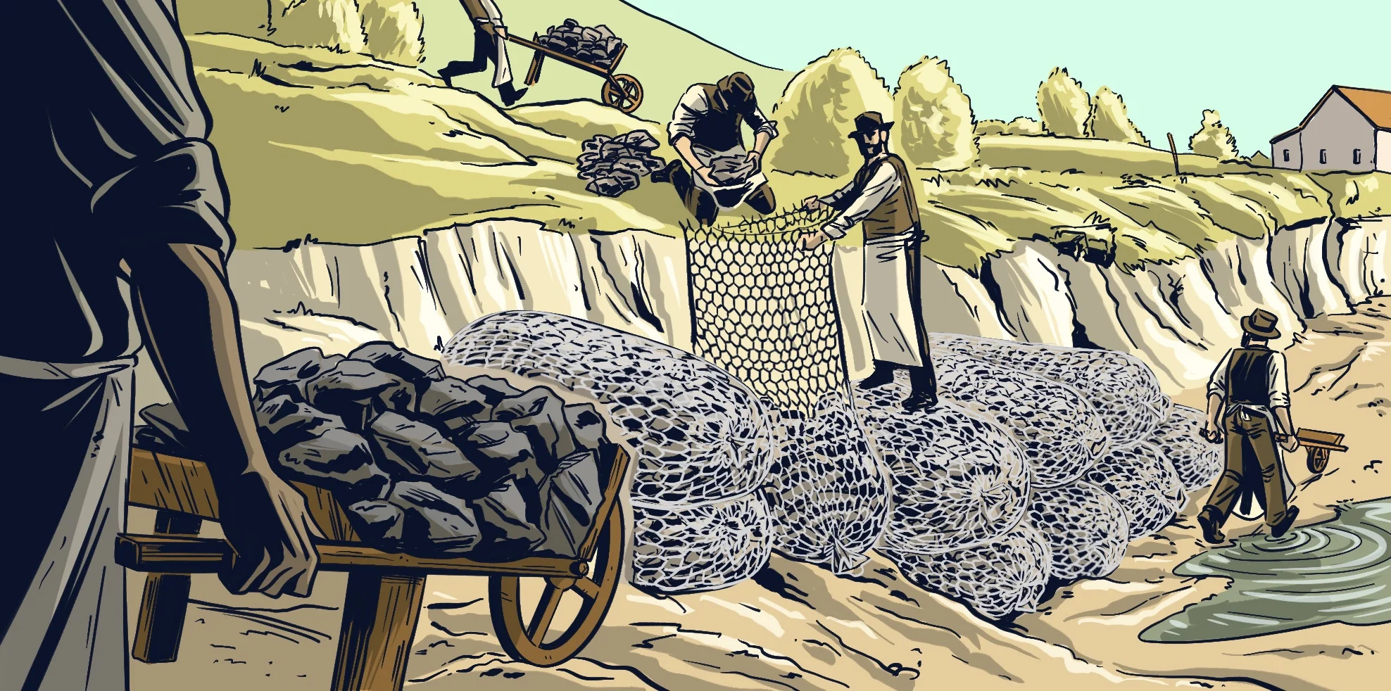 观看加筋石笼从 19 世纪末的实用用途到如今在全球可持续工程项目中关键作用的演变过程。